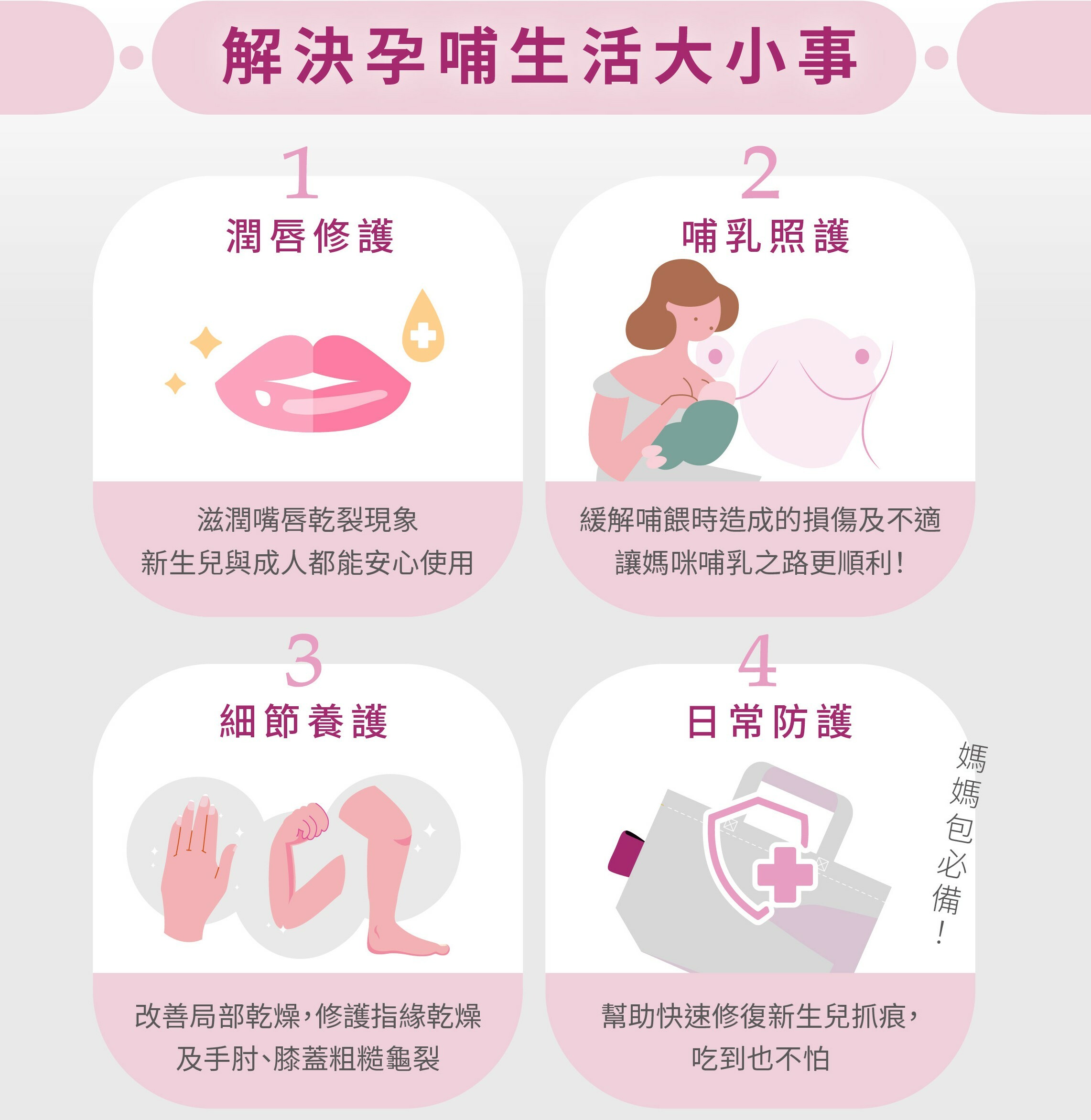 ● Gentle and natural, fragrance-free, suitable from one week before childbirth to postpartum breastfeeding