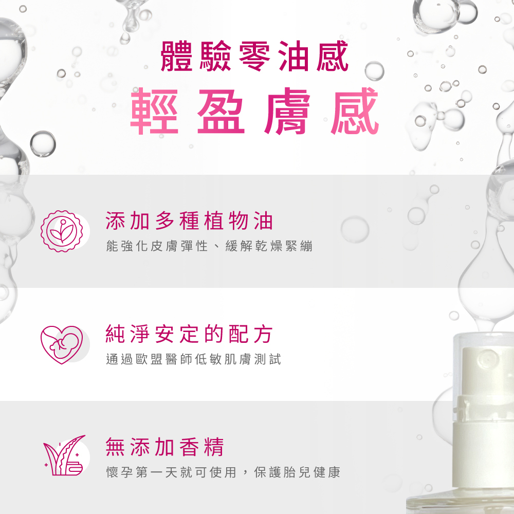 → 每日早晚使用,先用彈力潤膚油,待油吸收後再擦上無痕美體霜。(乾性肌膚的媽咪可以在中午或下午適時地補擦)