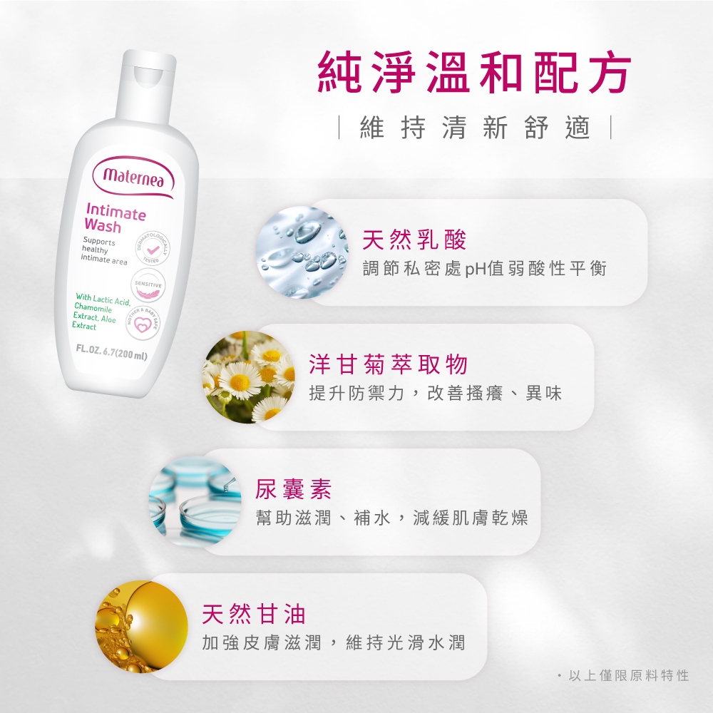 *甘油幫助保濕,舒緩潔淨後的乾燥感,柔嫩呵護私密肌膚