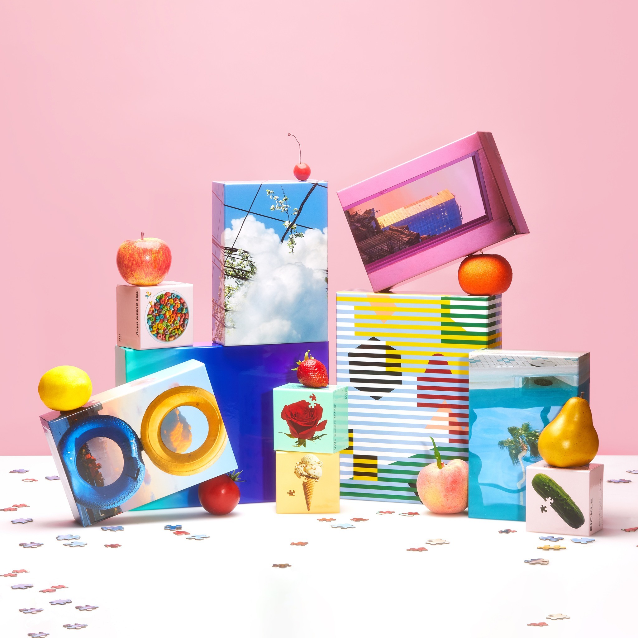 Kim 將她在紐約和美國各地拍攝的照片疊加在一起,創造出新的想像空間,不受現實的束縛。而我們將這些照片轉換為自定義的拼圖形狀,以鏡像的方式製作成兩個可以單獨或一起完成的不同拼圖。