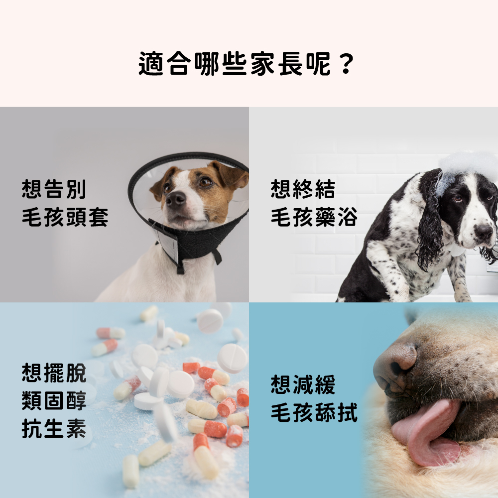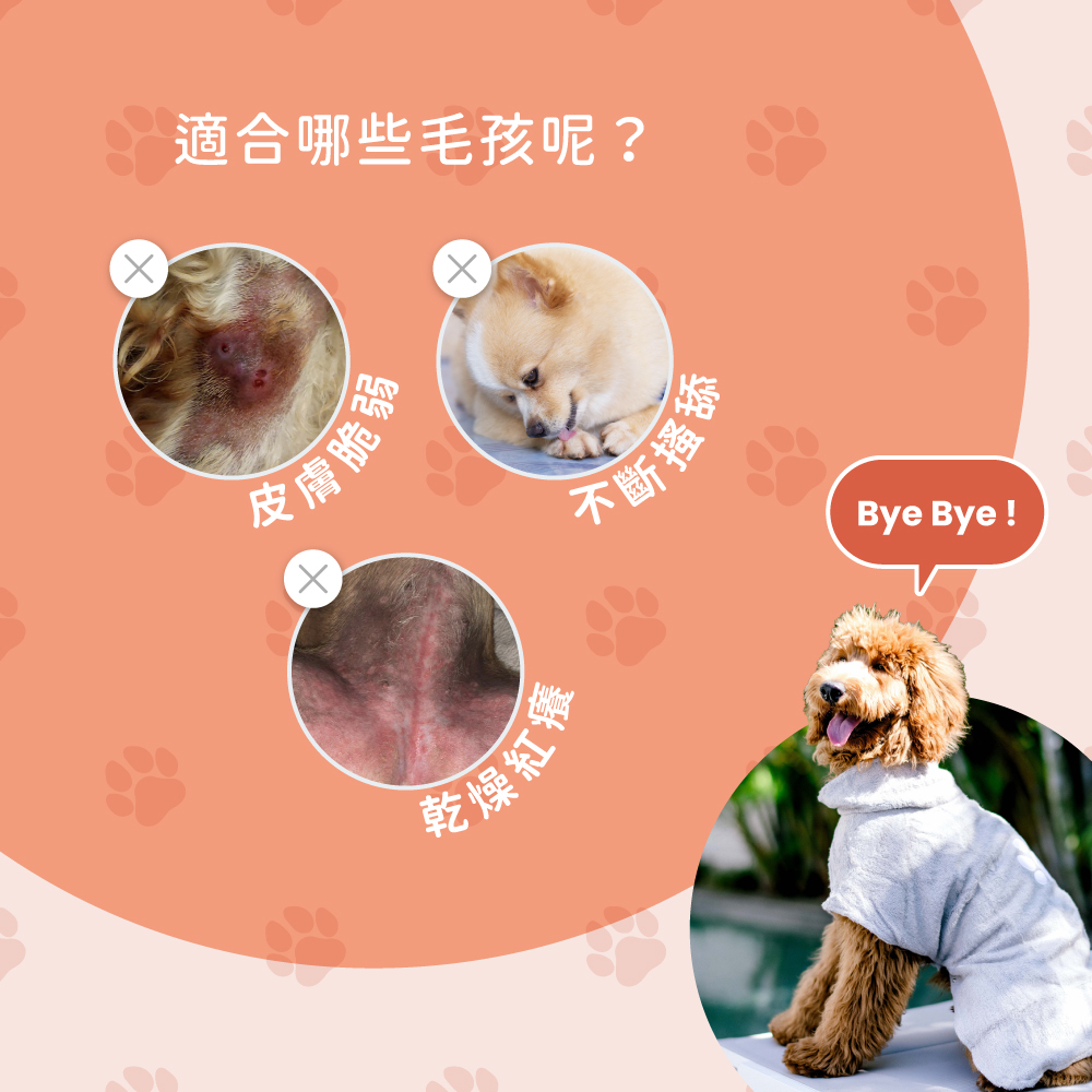 特別針對皮膚敏感、反覆舔腳、頻繁舔拭的毛孩們