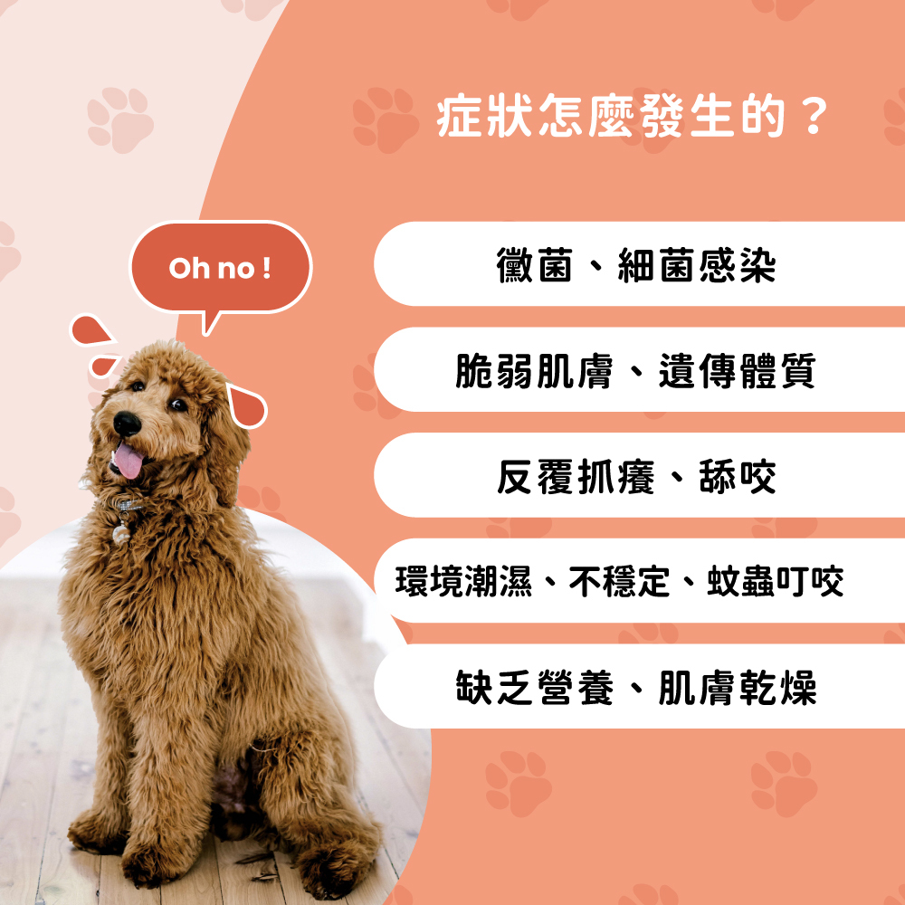 生活在環境潮濕的台灣,毛孩容易皮膚癢、皮膚紅紅、皮膚黴菌,造成各種皮膚疾病
