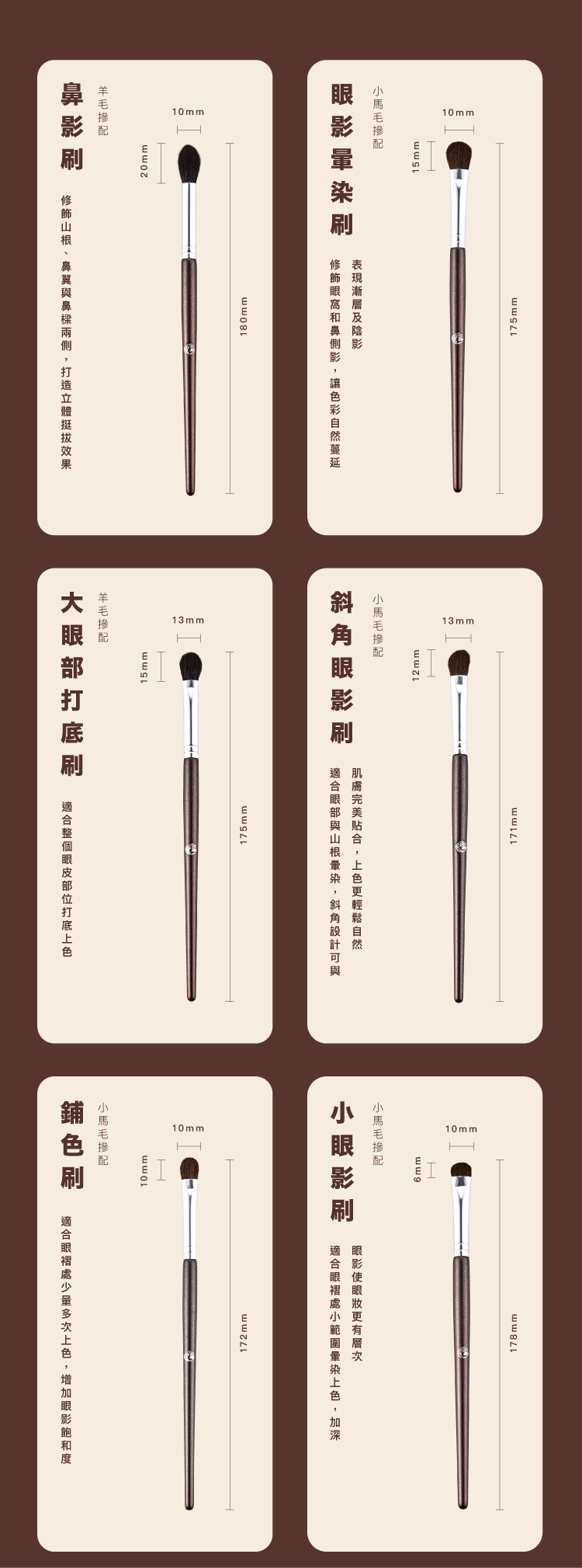 刷毛材質:小馬毛、細光鋒羊毛、纖維毛