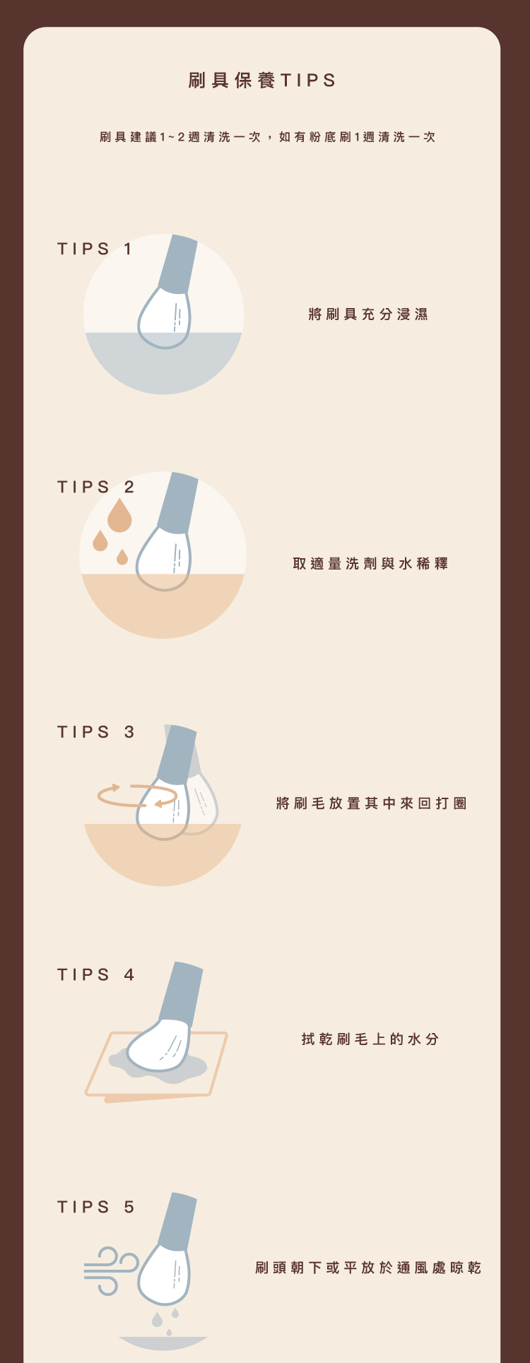 1.為個人衛生起見請避免共用刷具,一週建議清洗一次刷具避免細菌滋生。使用中性清潔液清洗,放置陰涼處晾乾即可。