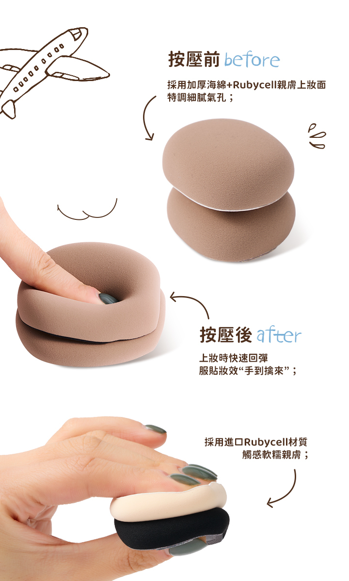 氣墊粉撲☁️嚴選柔軟親膚材質,融合 Rubycell 彈力結構,完美貼合肌膚,均勻釋粉、上妝更服貼。