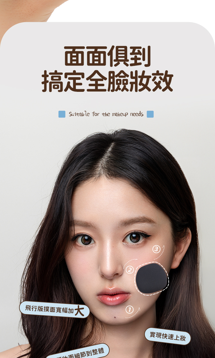 建議搭配妝品:蜜粉、粉餅、粉底液、氣墊等